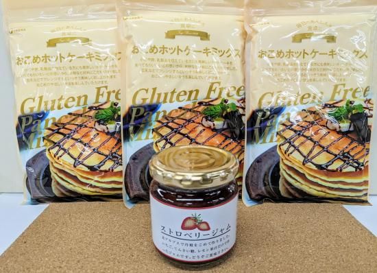 > おこめホットケーキミックス(3袋)&ストロベリージャムセット
