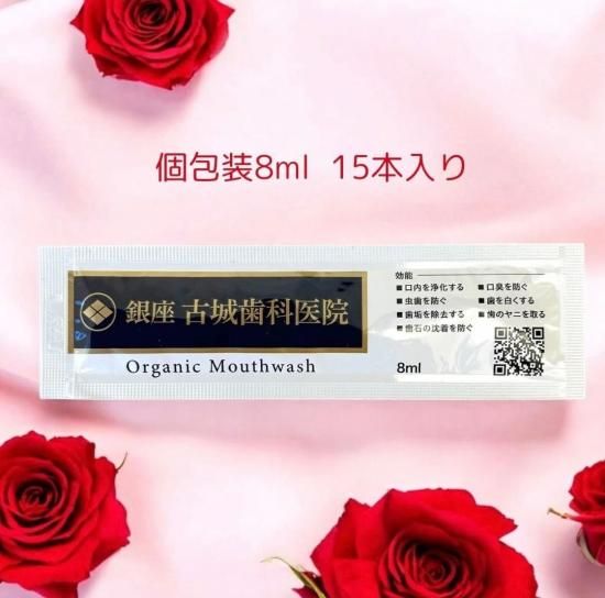 TOP > 生活雑貨 > 歯磨き粉・マウスウォッシュ > 完全日本製「オーガニックマウスウオッシュ8ml分包タイプ15本」銀座古城歯科医院五代目院長と辻安全食品株式会社共同開発の安心安全のマウスウォッシュ